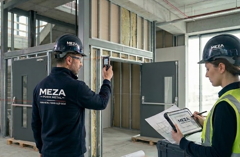 MEZA FORM METAL olarak, yangın güvenliği ve mimari detayların hatasız çözümlenmesi için sürecin en başında, uzman teknik ekibimizle yanınızdayız. Projelerinizde yapısal farklılıkları ve teknik gereksinimleri yerinde analiz ederek; kapı boşlukları, duvar kalınlıkları ve açılım yönleri gibi kritik detayları ücretsiz keşif hizmetimiz kapsamında titizlikle belirliyoruz.